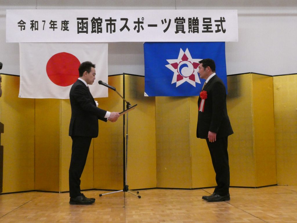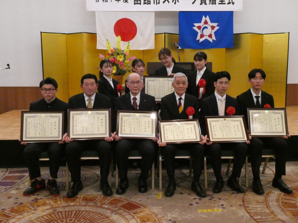 元協会会長の額賀康之さんが日本協会のメディカル委員の役職に従事しマウスガード着用を普及させ選手の安全推進に多大な貢献をしたとして函館市と函館市スポーツ協会から表彰を受けました。また、当ラグビーフットボール協会が100年の長きにわたり幼児から高齢者まで競技の普及や高校、大学、クラブチームの強化に多大な努力を払ってきたこと、またラガーハウスや根崎グラウンド本部席を建設し函館市へ譲渡したこと、現在もラグビー場の芝の管理や施設整備に協会を挙げて取り組んでいる努力に対して函館市スポーツ賞の功労団体の表彰を受けました。